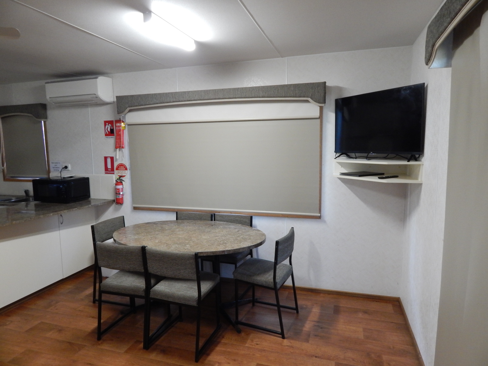 Our deluxe cabins are fitted out with LCD tv, Split AC system, microwave, cooking facilities, 2 sets of bunk beds, queen size double bed, lounge chairs, toilet and shower, in fact everything you will need for your stay.